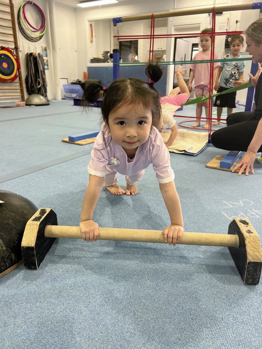 Classes focus on fundamental gymnastics shapes and movement patterns taught in a playful way to provide your child with a positive experience and a solid base to further develop their gymnastics skills. The class gives children the opportunity to experience different surfaces and use the various apparatus of floor, bars, beam, trampoline, parallel bars, wall bars and ropes as well as provide sensory stimulation.